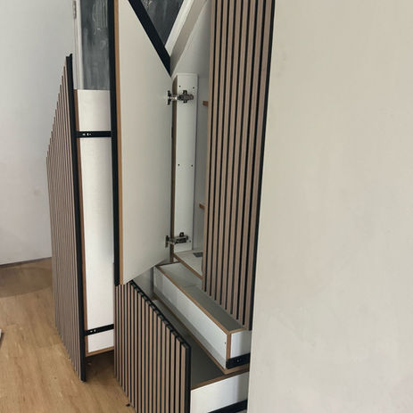 At Santiago Carpentry, we take pride in our craftsmanship and attention to detail. Here is a selection of storage solutions. Functional storage units to organise books and decorative items. Under-bed storage options to utilise otherwise unused space effectively.